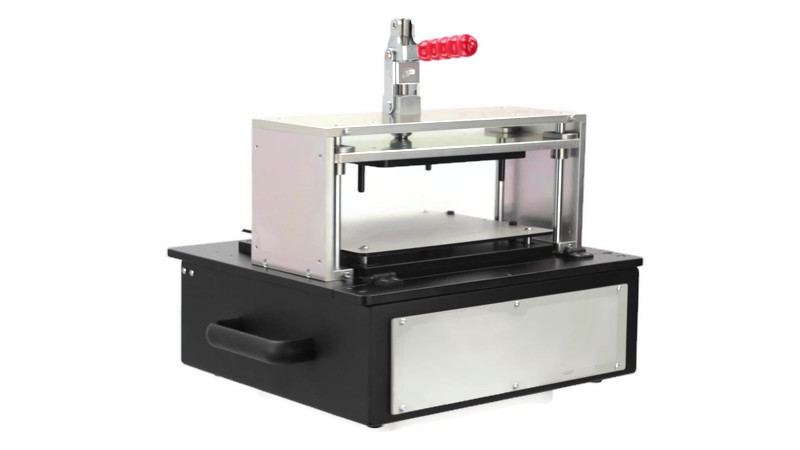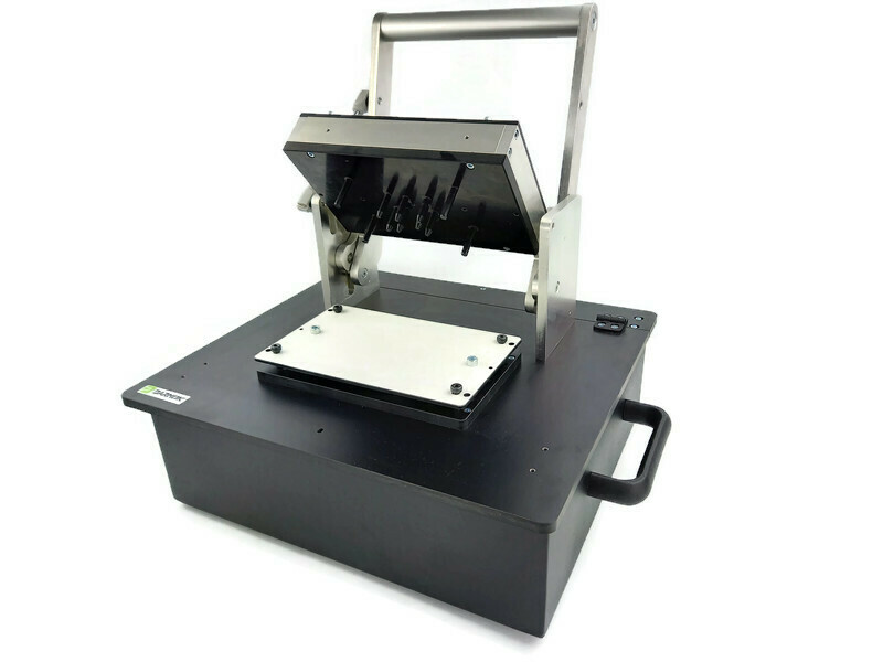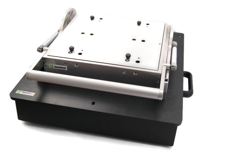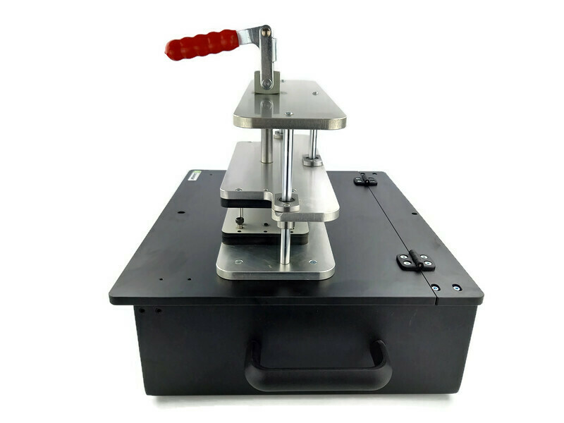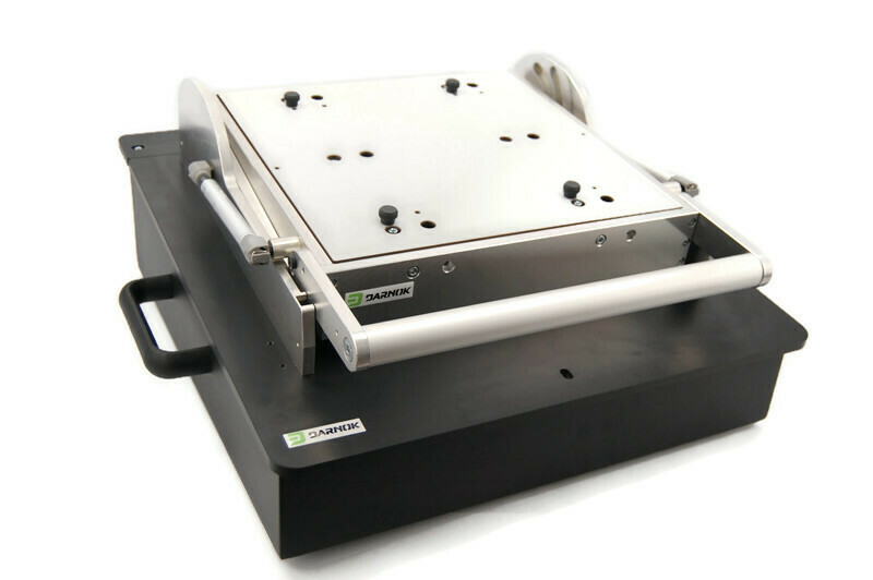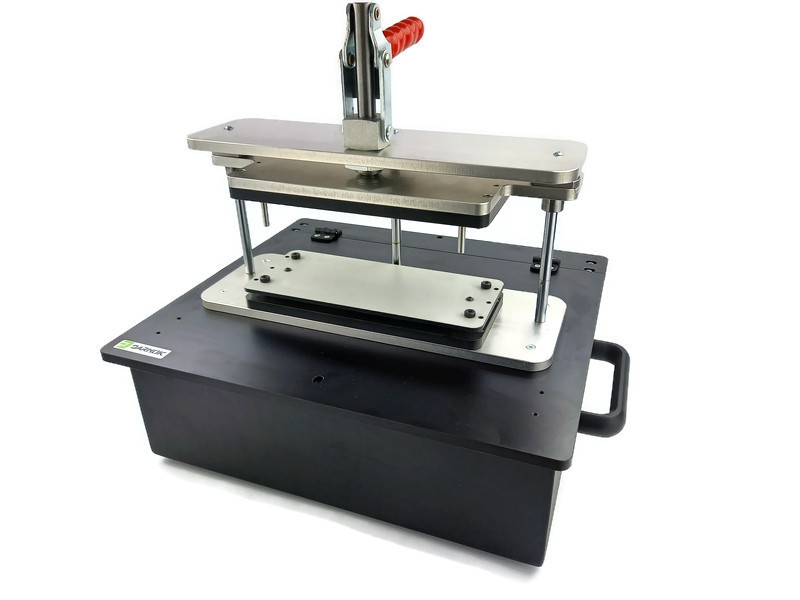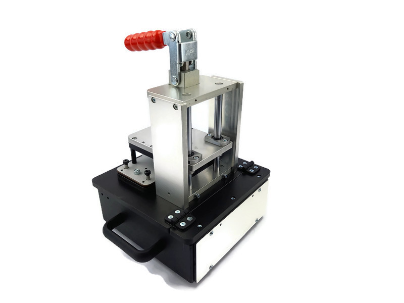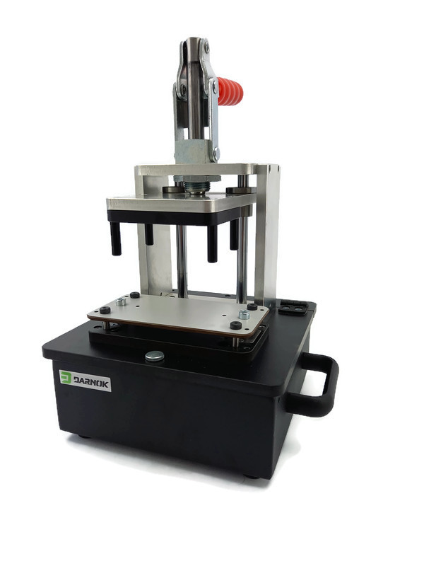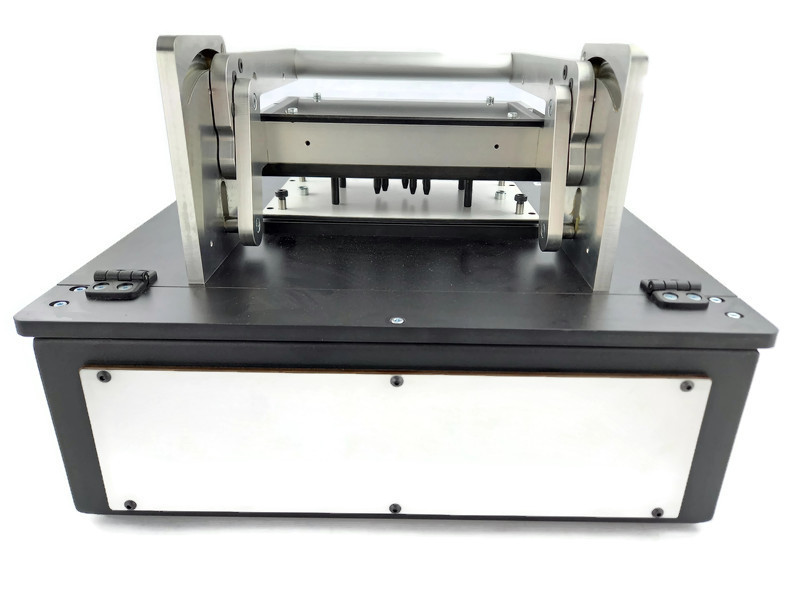 Zamykany (mechanicznie) siła mięśni operatora. Główną zaletą jest zamykanie jedną dźwignia- w tym samym momencie realizowany jest również docisk PCB do igieł.